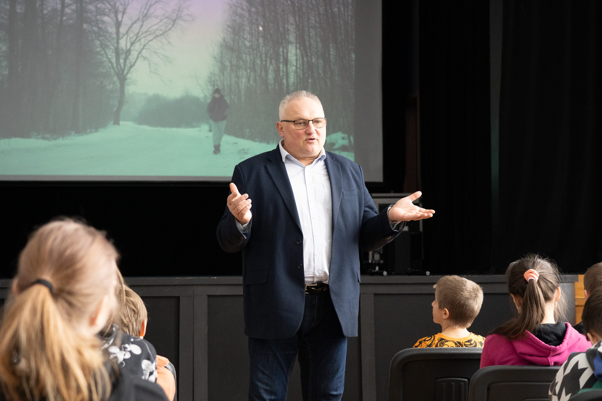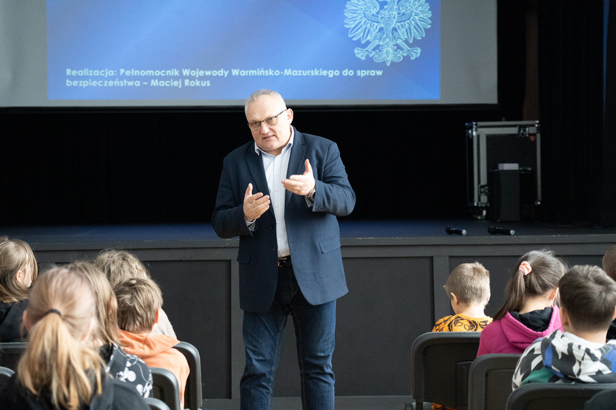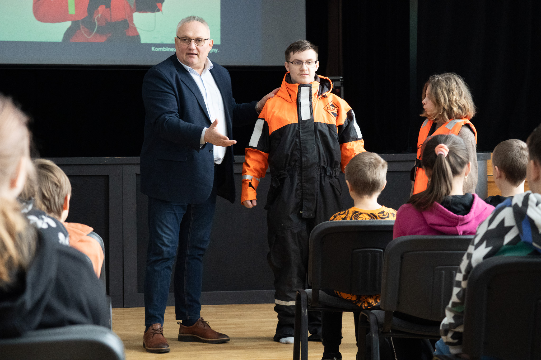 Naszym gościem był Maciej Rokus – doświadczony ratownik wodny i ekspert w zakresie bezpieczeństwa nad wodą. Podczas zajęć młodzież miała okazję dowiedzieć się, dlaczego lód – choć wygląda solidnie – może być bardzo niebezpieczny, jak rozpoznać zagrożenie oraz jak prawidłowo reagować w sytuacji, gdy ktoś wpadnie do lodowatej wody. Nie zabrakło praktycznych wskazówek, przykładów z życia oraz rozmów o odpowiedzialności i rozsądku podczas zimowych zabaw.